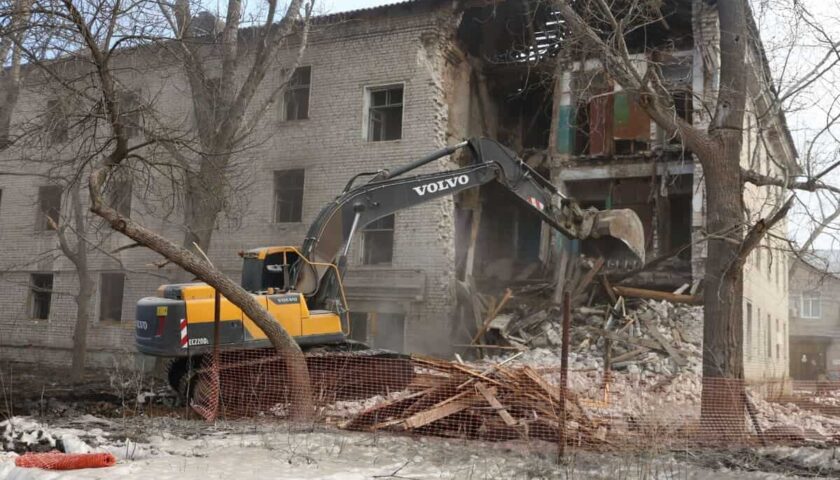 Сносят здание работники ООО «Капиталстрой-Д». Полностью работы, в том числе подготовку ровной площадки после демонтажа, должны быть завершены до конца апреля 2024 года. Подрядчик также обязан вывезти строительные отходы – их объём составит около 2,5 тысяч куб. метров. Около 25% из общей массы отправят на переработку.