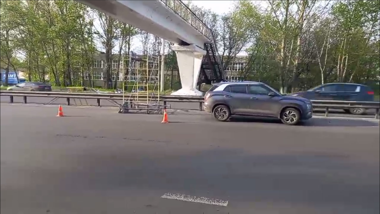 Авария произошла в 16:30. По предварительным данным, водитель 1978 года рождения, управляя автомобилем Hyundai, врезался в строительные леса, которые отбросило в дорожного рабочего.
