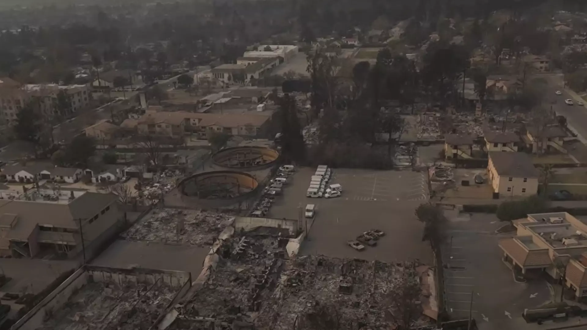 Автор видео отметил, что в этом месте пальмы полностью уничтожены, сотни домов и зданий разрушены огнем, электричества в указанном районе сейчас нет.